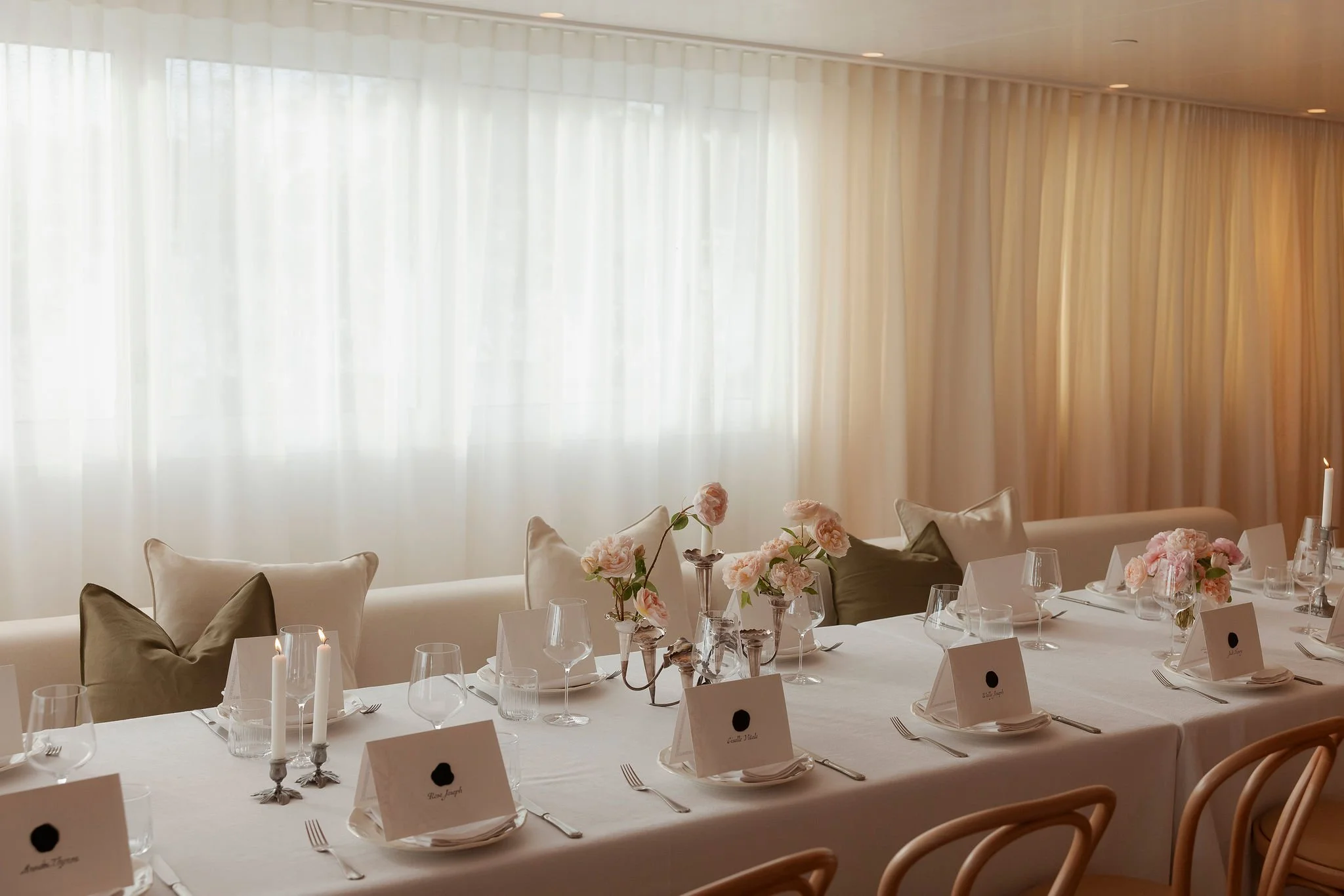 Exclusive event space overlooking the picturesque Manly cove, AV support, fully furnished with indoor and outdoor cocktail and lounge furniture, linen, cutlery, glassware and bentwood chairs, private bar and outdoor terrace.